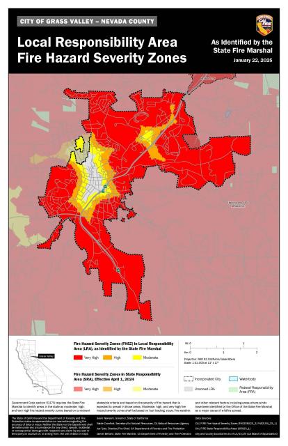moderate, high, and very high fire hazard severity zones based on