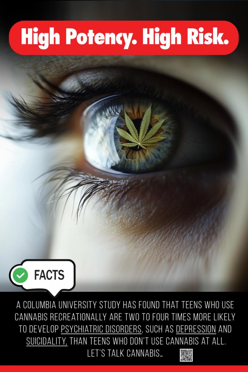 A study conducted by Columbia University analyzed data from approximately 70,000 adolescents aged 12 to 17 and found that adolescents who use cannabis recreationally are two to four times more likely to develop psychiatric disorders, such as depression and suicidality, compared to non-users. The research also indicated that even casual cannabis use among teens is associated with problem behaviors, including poor academic performance, truancy, and legal issues, which can have long-term negative consequences. Read it.