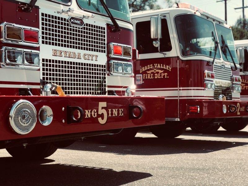 In 2018 the Nevada City Fire Department and the Grass Valley Fire Department entered into a Shared Administration pilot program. With the success of that program the two agencies fully merged in 2020 with Nevada City contracting for services through Grass Valley. This has resulted in a single agency comprised of a Fire Chief, a Division Chief, 3 Battalion Chiefs, 7 Fire Captains, 16 Firefighters, 2 Prevention Officers and a Fire Mechanic. Nevada City Station 5 located at 201 Providence Mine Rd. responds to approximately 1,200 calls for service a year and provides 24 hour, year-round service. The Fire Department currently operates a 2020 KME Type I engine, a 2005 Pierce Type I Engine, a 2011 HME Type III Brush Engine, and three Utility Vehicles to cover the City. We also respond to calls in other jurisdictions under a Mutual Aid and Auto Aid Agreements. Our Department has been out on numerous wildland fires and other disasters with the US Forest Service, the California Department of Forestry and the Office of Emergency Services.